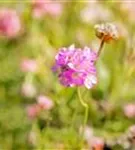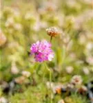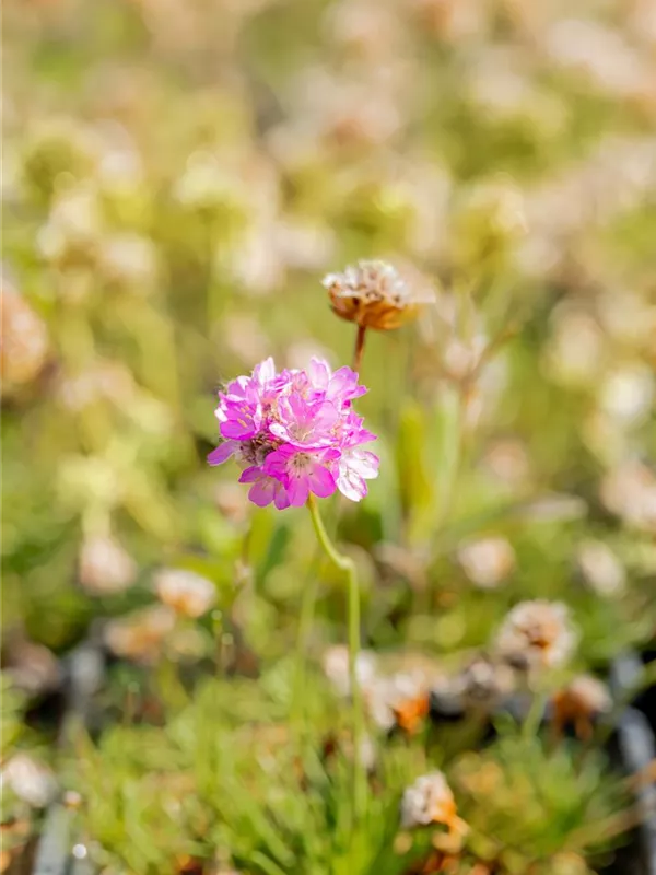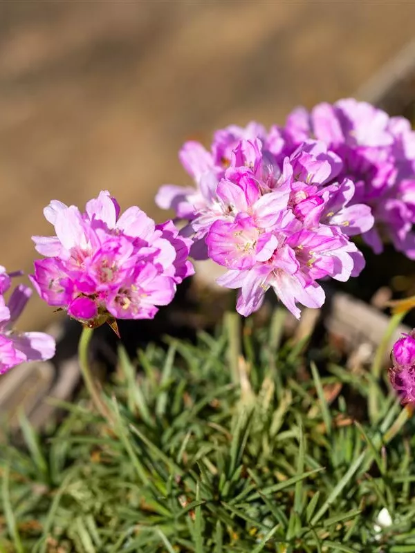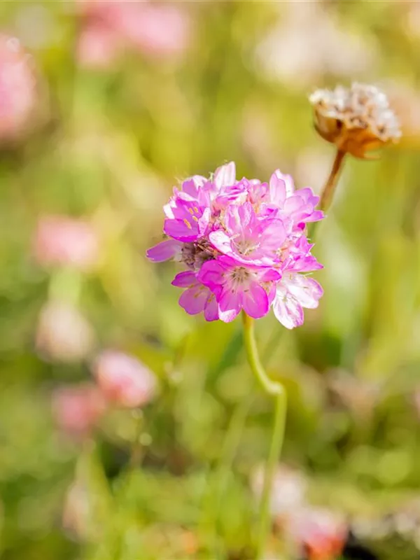 Armeria juniperifolia bildet ballförmige, rosafarbene Blüten ab Mai.