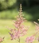 Astilbe x arendsii 'Anita Pfeifer' bildet in Rispen angeordnete, lachsrosafarbene Blüten ab Juli.