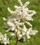 Astilbe japonica 'Deutschland' bildet in Rispen angeordnete, weiße Blüten ab Juni.
