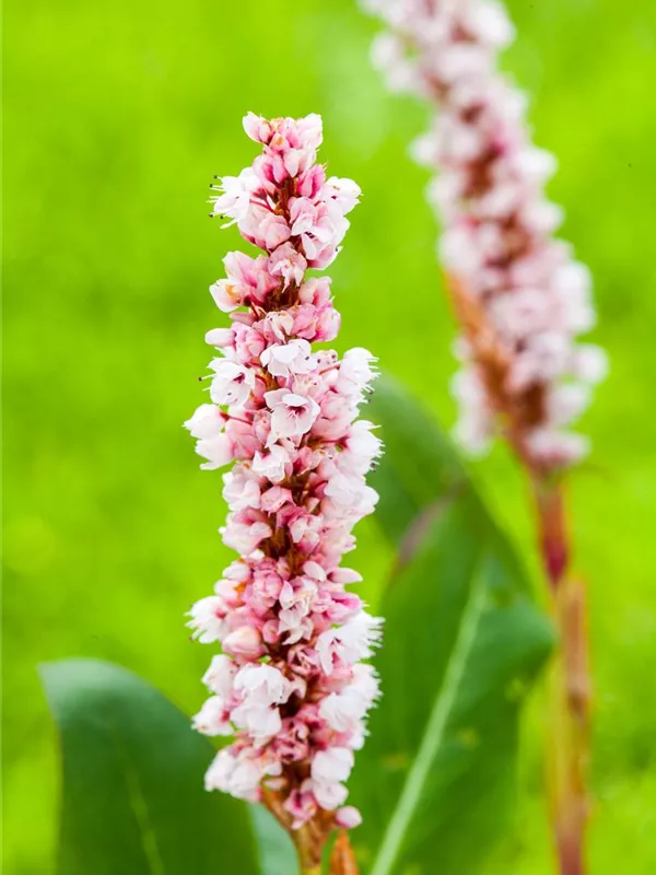 Bistorta affinis bildet in Ähren angeordnete, rosafarbene Blüten ab Juli.