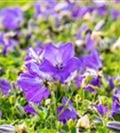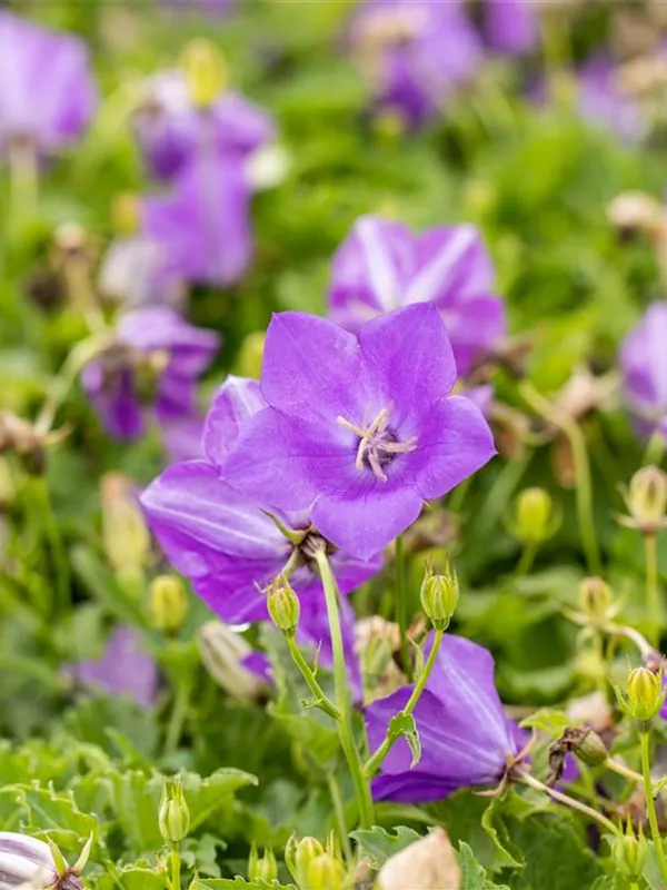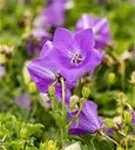 Campanula carpatica 'Blaue Clips' bildet glockenförmige, blaue Blüten ab Juni.