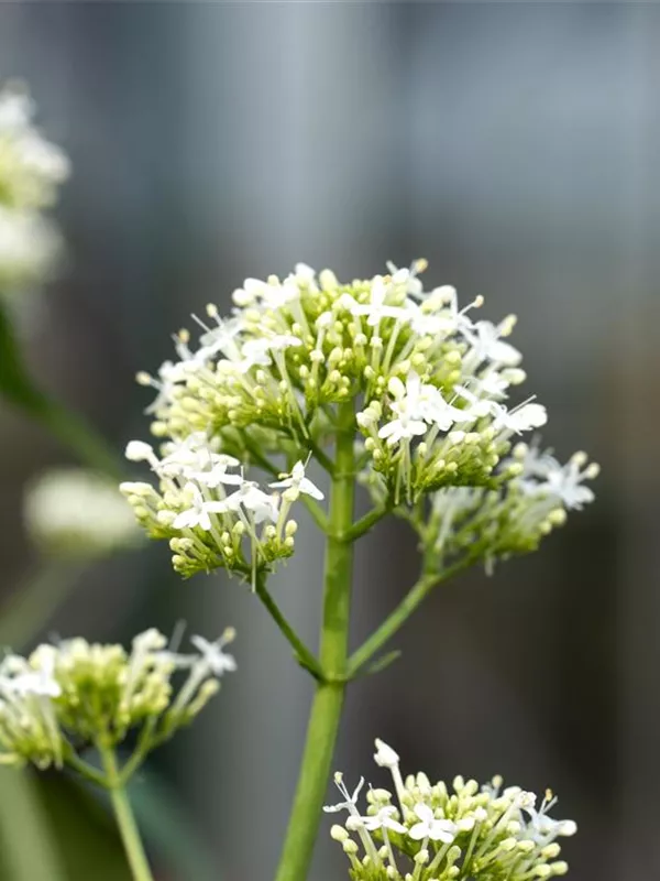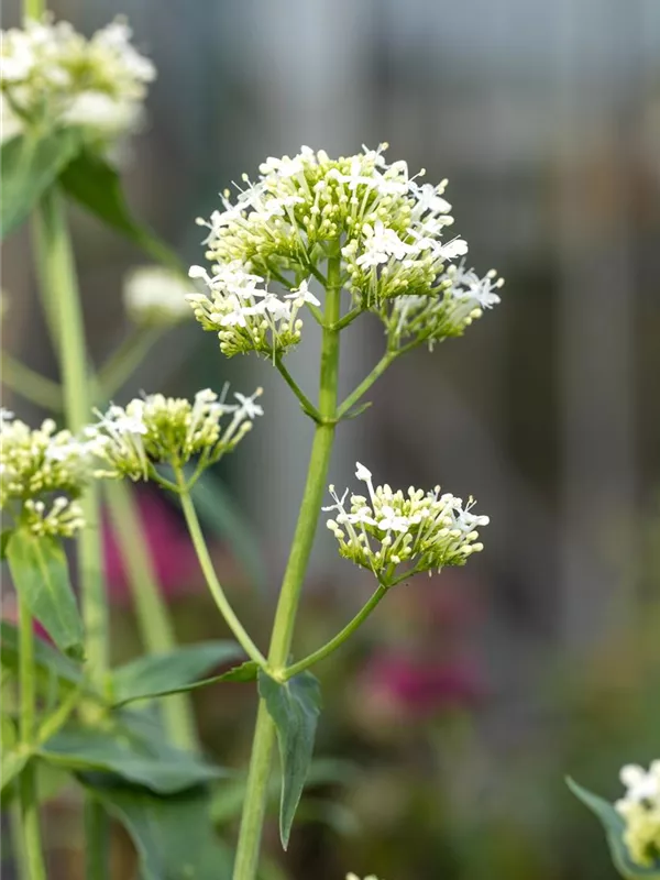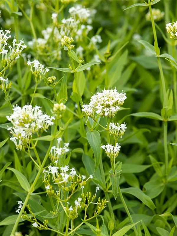 Centranthus ruber 'Albus' bildet sternförmige, in Rispen angeordnete, weiße Blüten ab Juni. Diese verströmen einen angenehmen Duft.