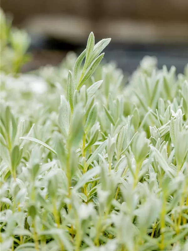 Hoher Blattschmuckwert. Die immergrünen Blätter des Filzigen Hornkrauts sind silbrig, lineal.