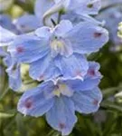 Delphinium grandiflorum 'Delfix® Dark /Light Blue' bildet in Rispen angeordnete, blaue Blüten ab Juli. Bei richtiger Pflege Nachblüte von September bis Oktober.
