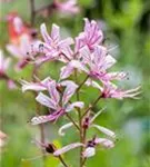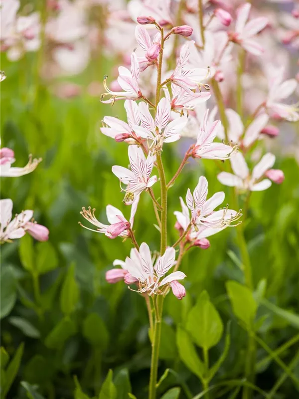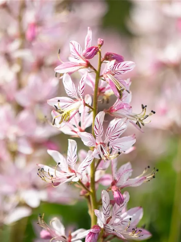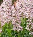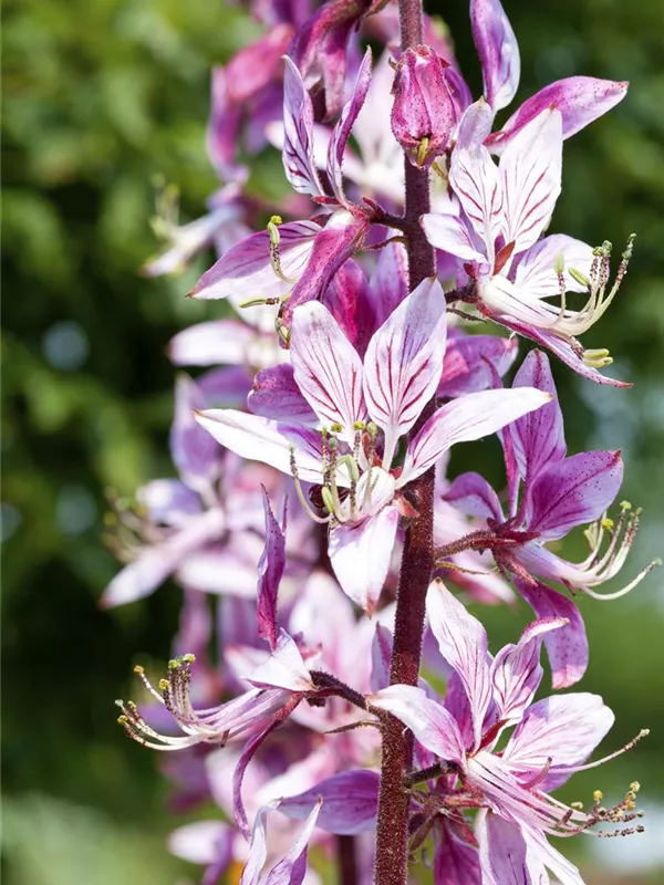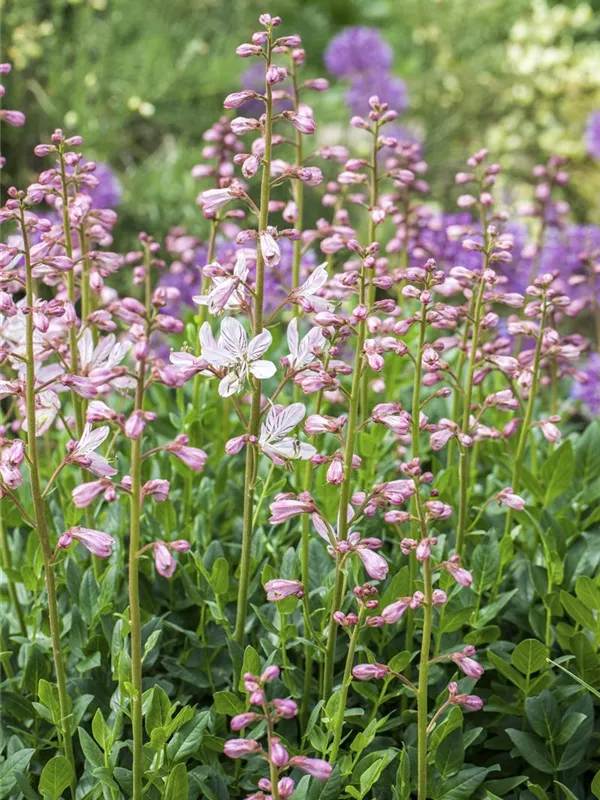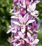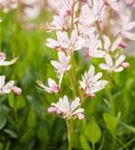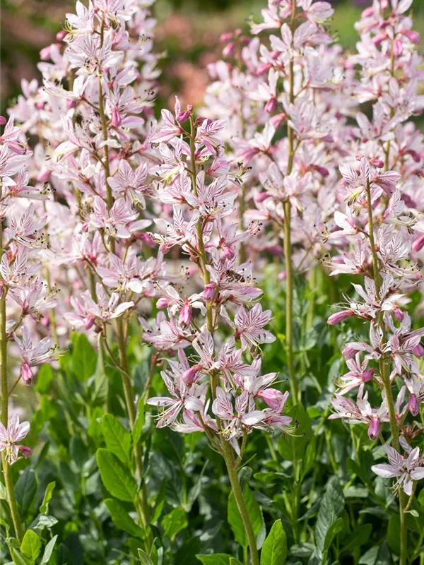 Dictamnus albus bildet in Rispen angeordnete, rosafarbene Blüten ab Juni. Diese verströmen einen angenehmen Duft.