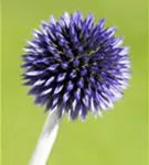 Echinops ritro 'Veitchs Blue' bildet ballförmige, blaue Blüten ab Juli.