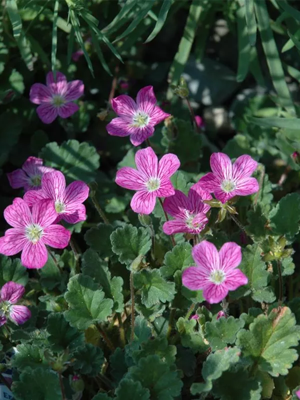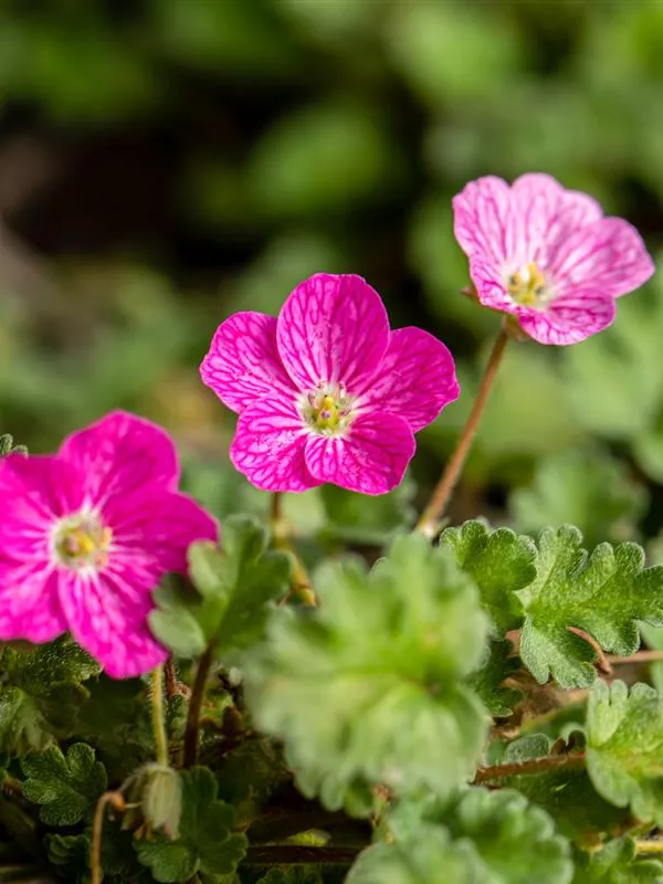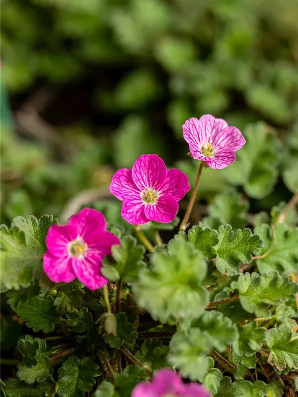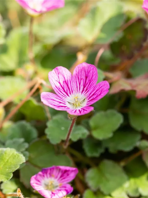 Erodium x variabile 'Bishop´s Form' bildet rosafarbene Blüten ab Mai.