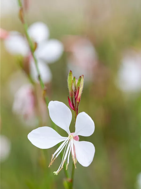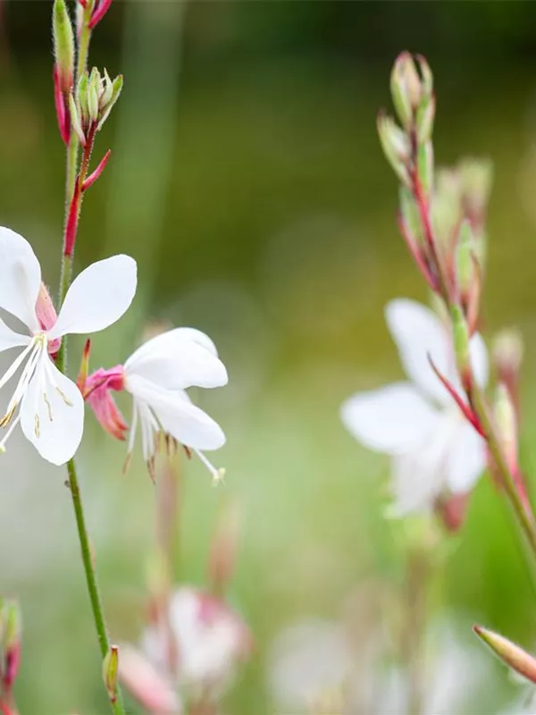 Gaura lindheimeri 'Gambit® White' bildet in Rispen angeordnete, weiße Blüten ab Juli.
