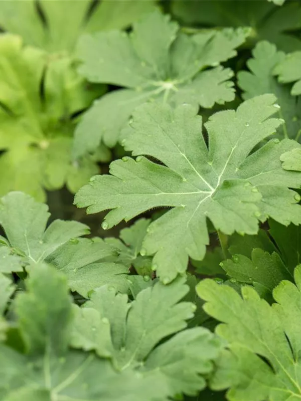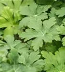 Die wintergrünen Blätter des Garten-Storchschnabels 'Spessart' sind mittelgrün, rundlich, gelappt.