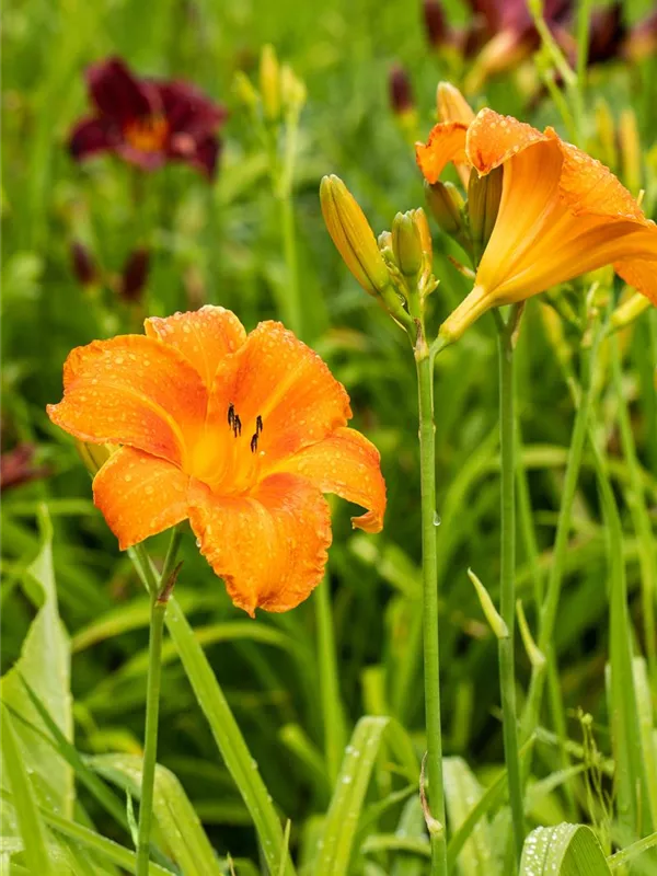 Die Garten-Taglilie 'Pardon Me' setzt schöne Akzente gemeinsam mit: