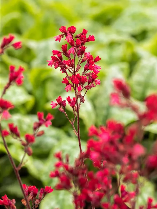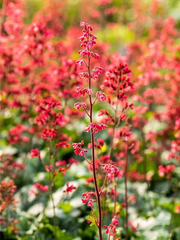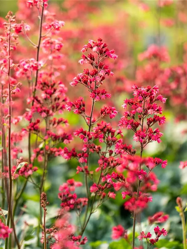 Heuchera 'Paris' bildet dunkelrosafarbene Blüten ab Juni.