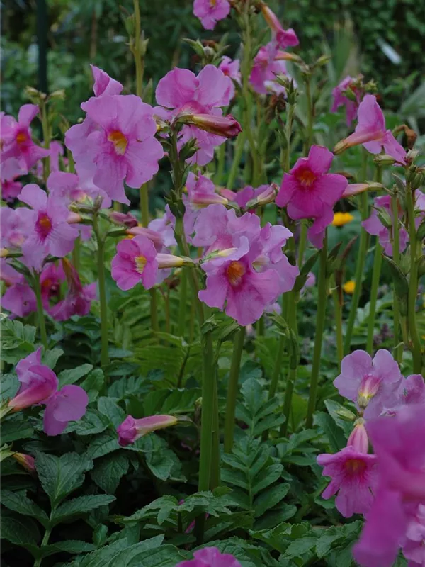 Incarvillea delavayi bildet trichterförmige, rosafarbene Blüten ab Mai. Diese verströmen einen angenehmen Duft.