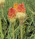 Kniphofia uvaria 'Royal Castle' bildet in Kolben angeordnete, orange-rote Blüten ab Juli.