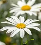 Leucanthemum x superbum 'Gruppenstolz' bildet körbchenartige, weiße Blüten ab Juli. Diese verströmen einen angenehmen Duft.
