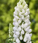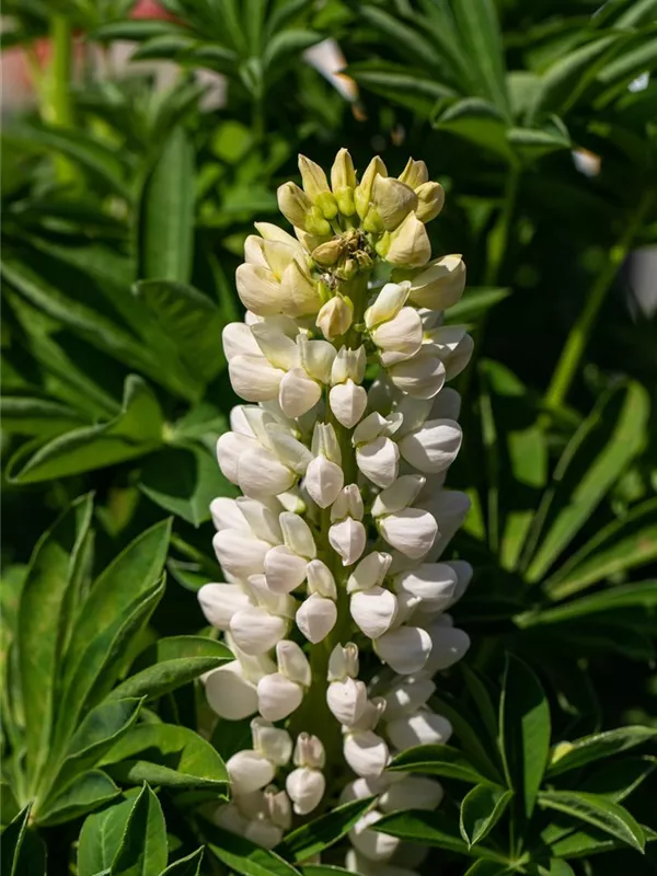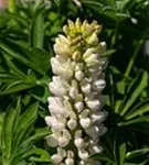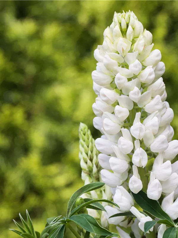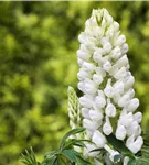 Lupinus polyphyllus, weiß bildet weiße Blüten ab Mai. Diese verströmen einen angenehmen Duft.