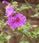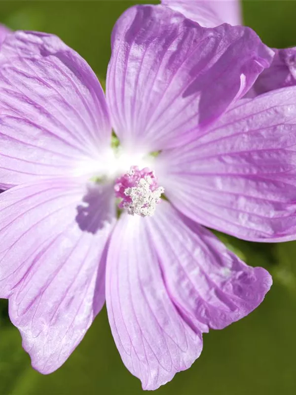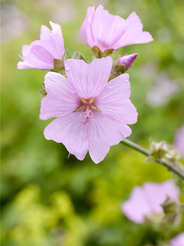 Malva moschata bildet schalenförmige, hellrosafarbene Blüten ab Juni. Diese verströmen einen angenehmen Duft.