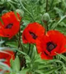 Papaver orientale 'Beauty of Livermere' bildet schalenförmige, scharlachrote Blüten ab Juni.