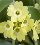Primula auricula, gelb bildet glockenförmige, in Dolden angeordnete, gelbe Blüten ab April. Diese verströmen einen angenehmen Duft.