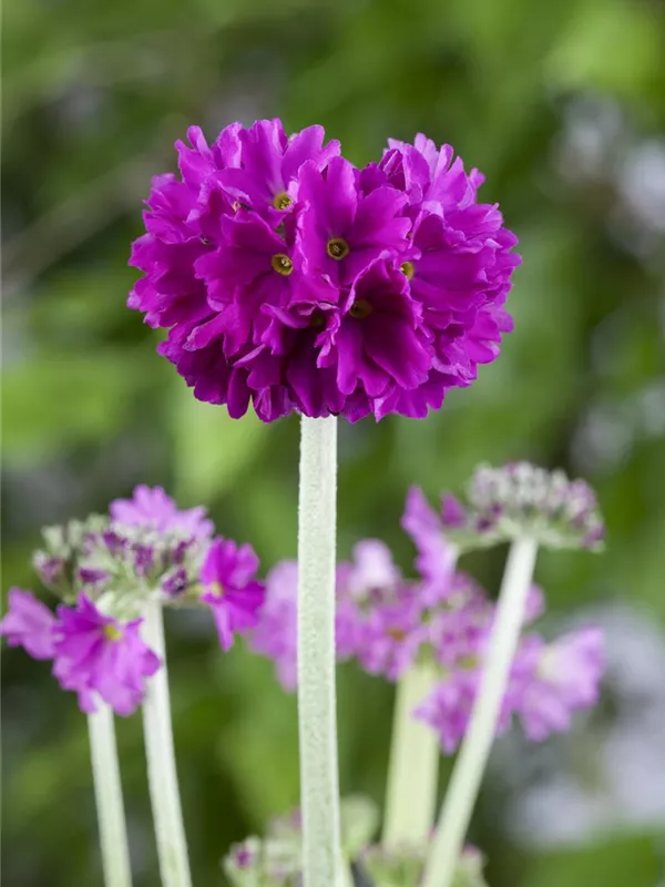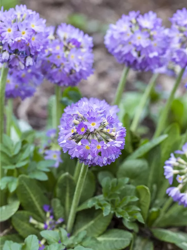 Primula denticulata bildet ballförmige, violette Blüten ab März.