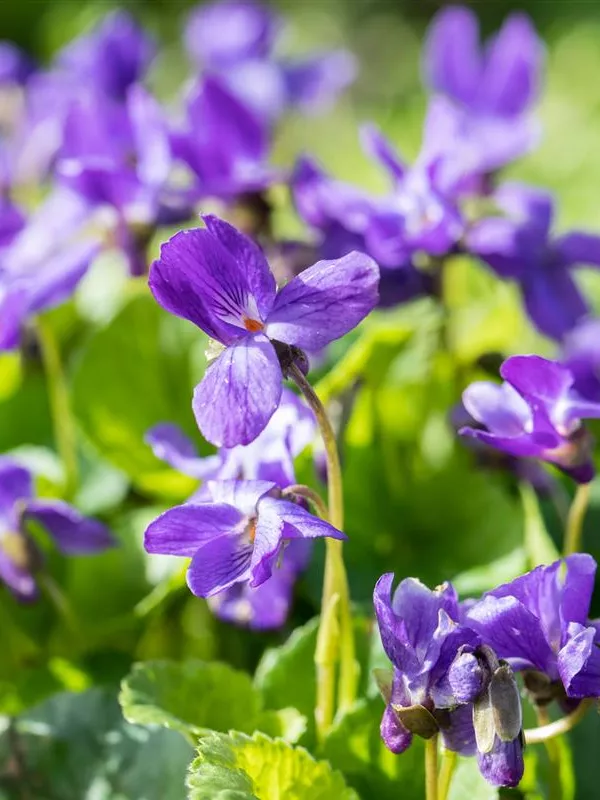 Viola odorata 'Königin Charlotte' bildet blaue Blüten ab März. Diese verströmen einen angenehmen Duft.
