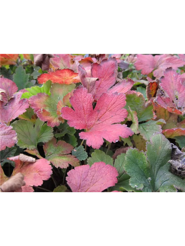 Die sommergrünen Blätter der Nelkenwurzähnliche Waldsteinie sind mittelgrün, herzförmig, gezähnt, gelappt.
