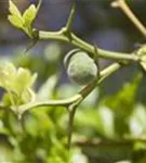 Besonders dekorativ sind die gelben, runden Früchte von Poncirus trifoliata. Diese erscheinen ab September.