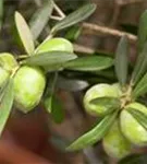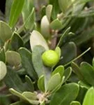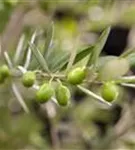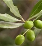 Die grünen bis schwarzen Steinfrüchte haben einen aromatischen Geschmack. Reifezeit ab September.