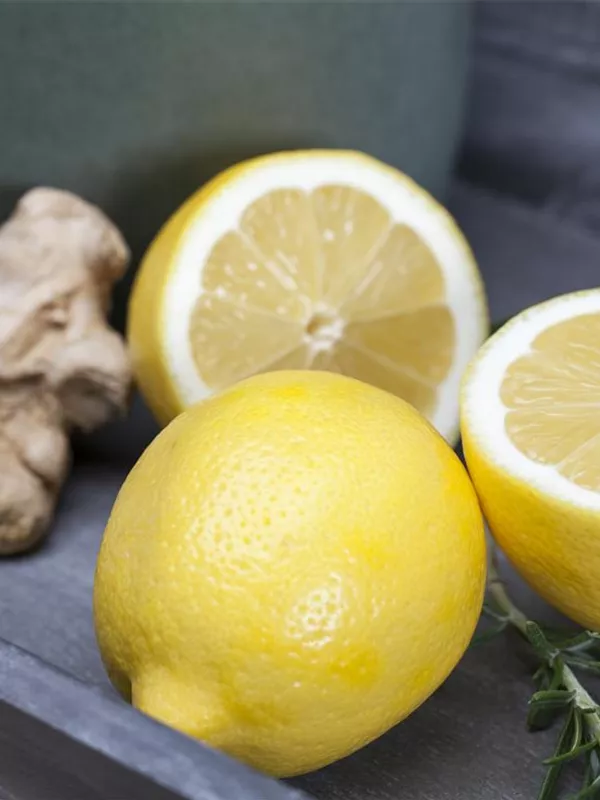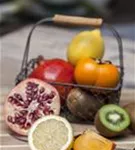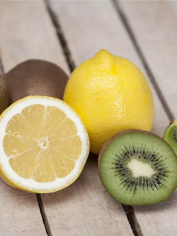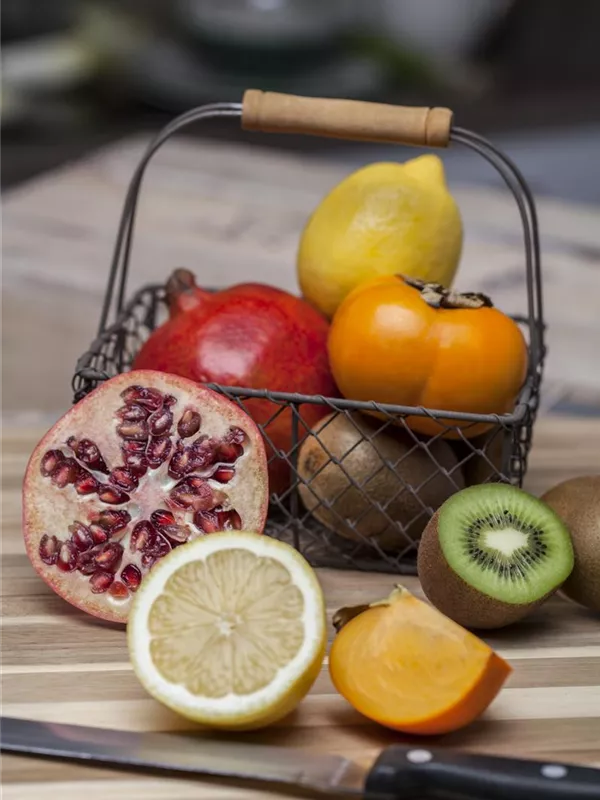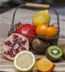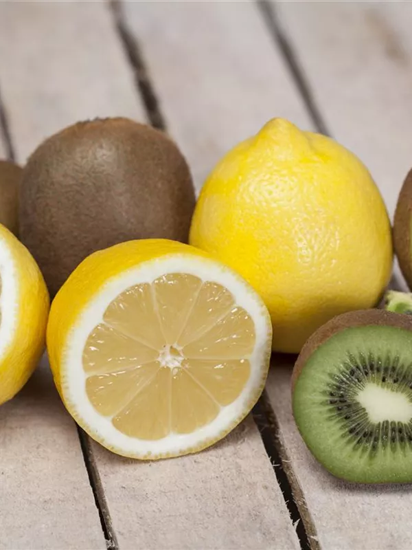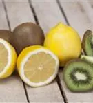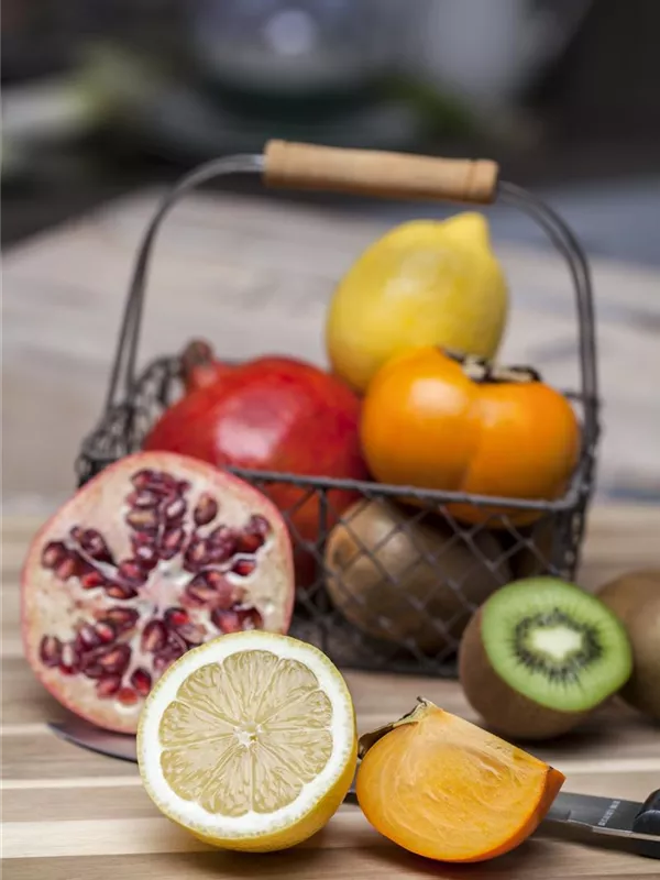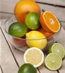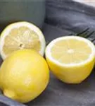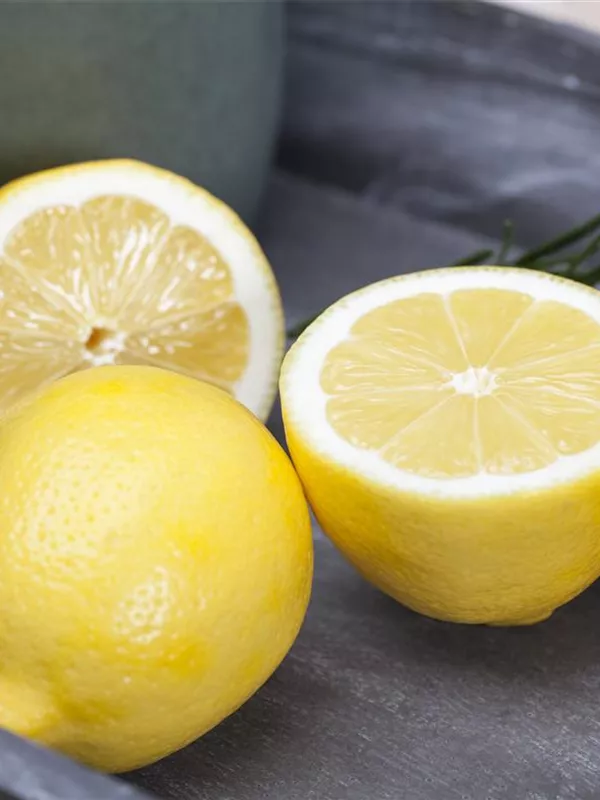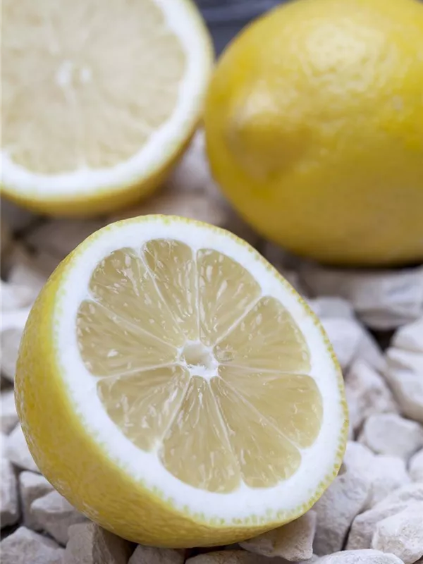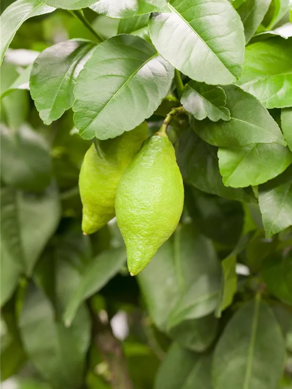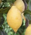 Besonders dekorativ sind die gelben Früchte von Citrus limon. Diese erscheinen ab Juli.
