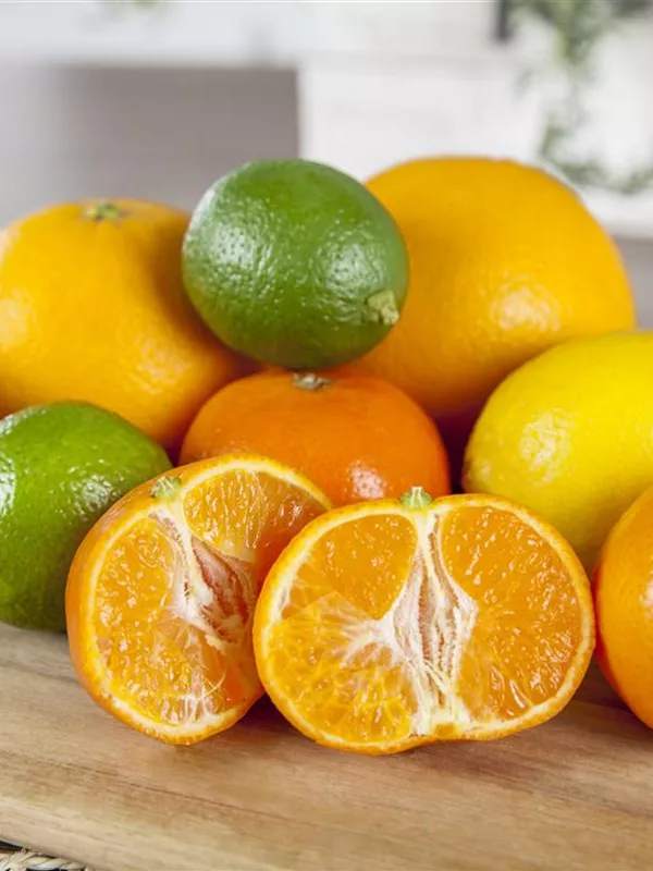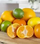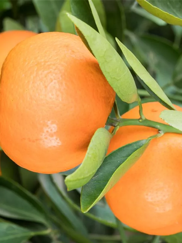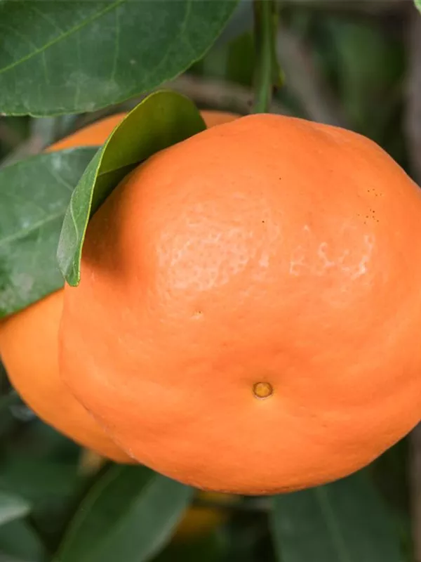 Citrus reticulata bildet orangefarbene Früchte mit einem süß-säuerlichen Geschmack. Reifezeit ab Dezember.