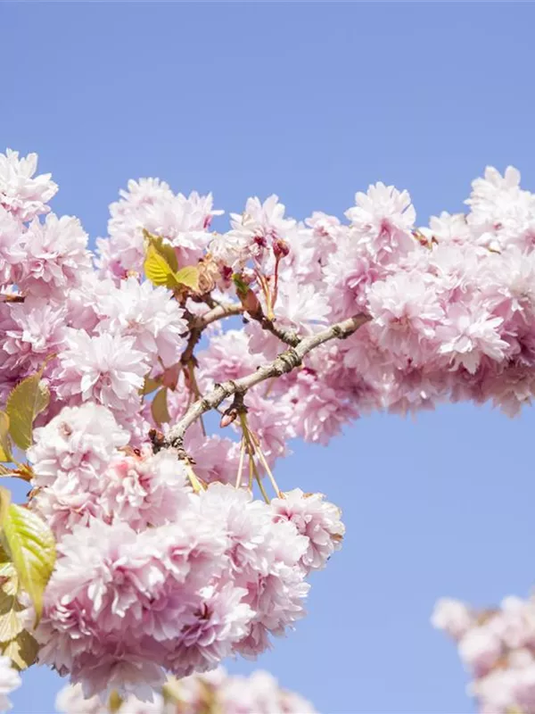Die rosafarbenen, schalenförmigen Blüten erscheinen im April.
