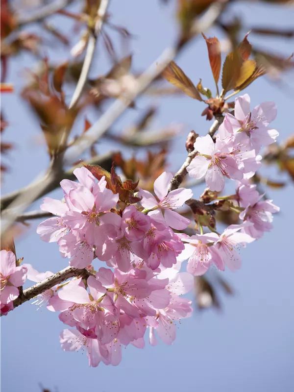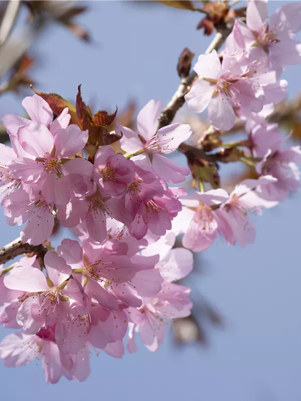 Die Triebe von Prunus sargentii sind glatt, rot.