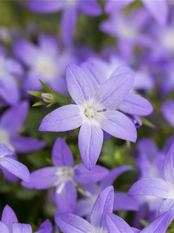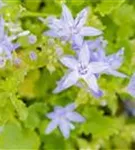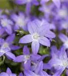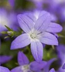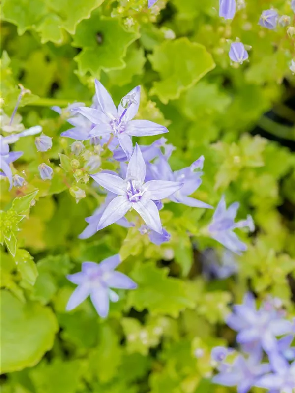 Campanula garganica bildet glockenförmige, sternförmige, blaue Blüten ab Juni.