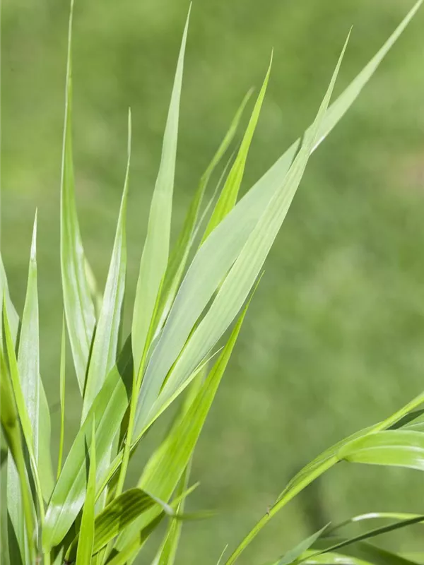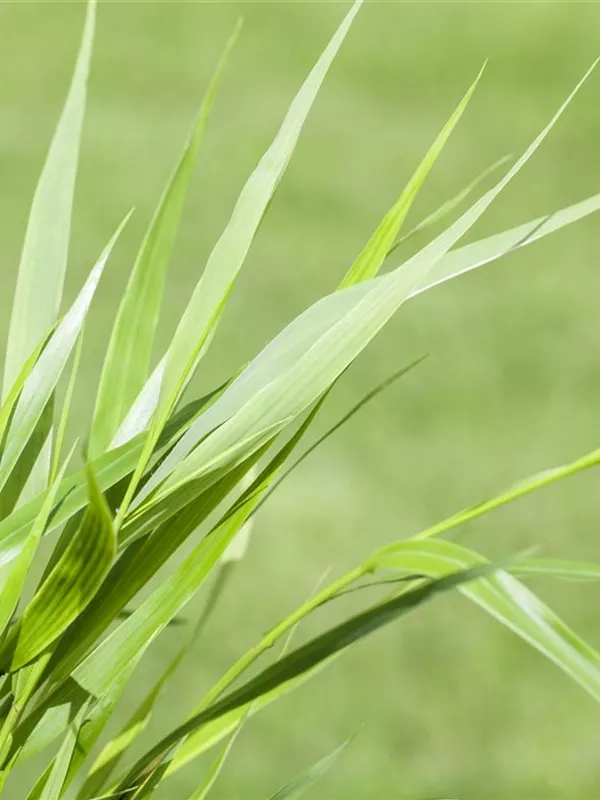 Die sommergrünen Blätter des Japanischen Berggrases sind dunkelgrün, lineal.