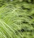 Die wintergrünen Blätter des Zarten Federgrases sind hellgrün, lineal.