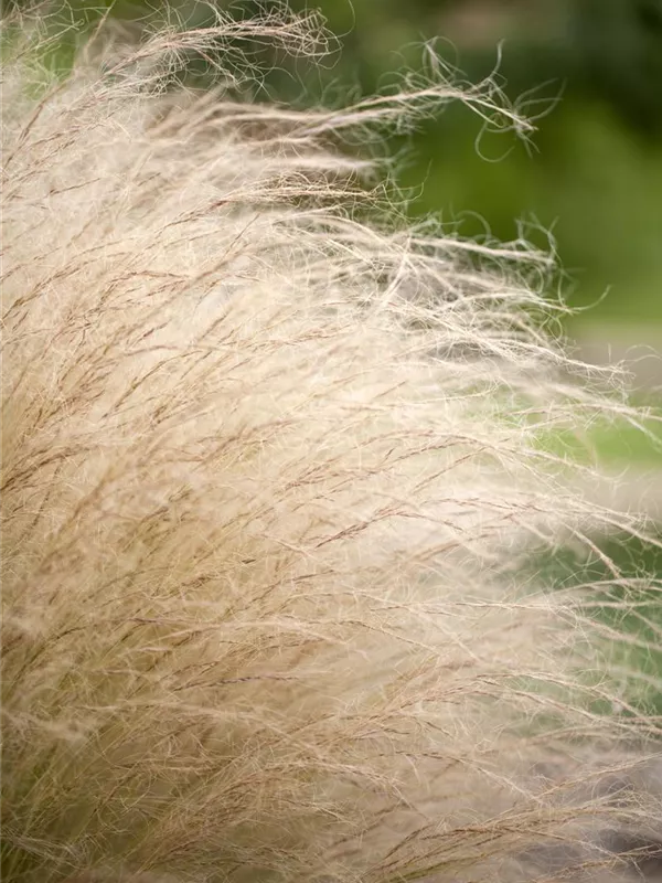 Die cremeweißen Blüten des Zarten Federgras erscheinen in Rispen von Juni bis Juli.