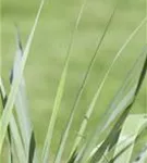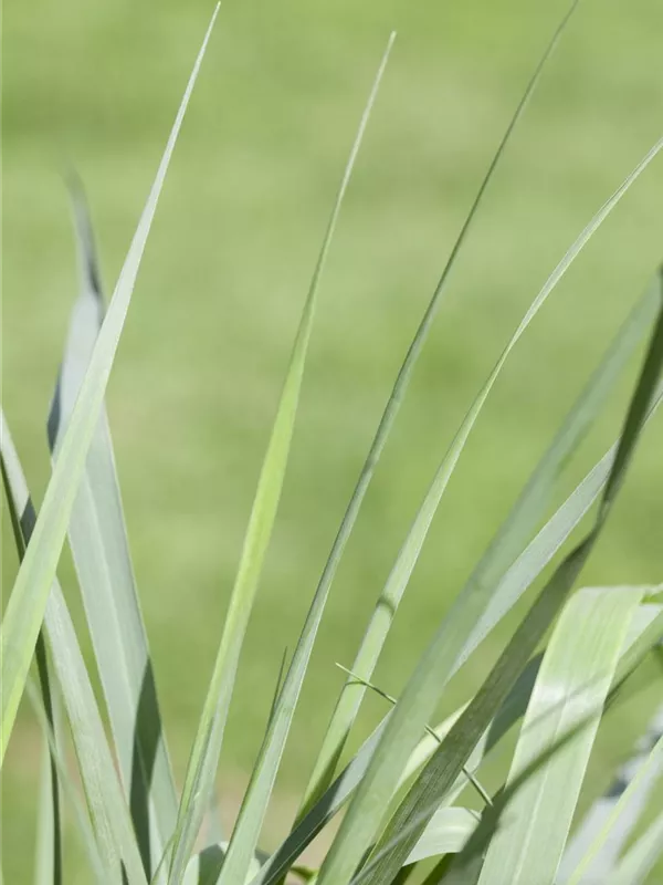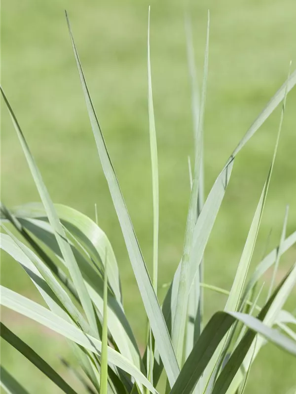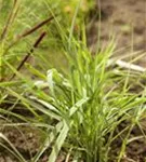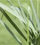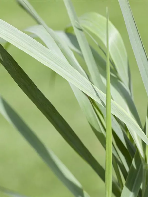 Die sommergrünen Blätter der Garten-Ruten-Hirse 'Prairie Sky' sind blau-grau, lineal.