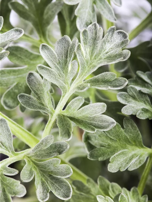 Zum Verzehr geeignet. Die silbrigen Blätter sind gefiedert und überzeugen mit aromatischem Geschmack.