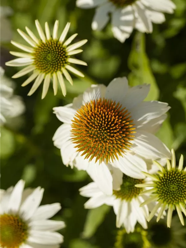 Zum Verzehr geeignet. Echinacea purpurea 'PowWow® White' bildet körbchenartige, weiße Blüten ab Juli.
