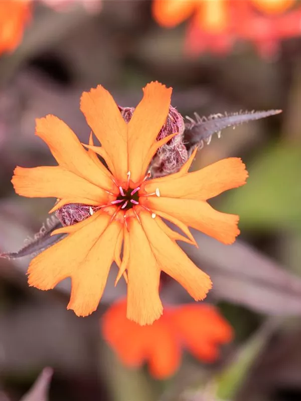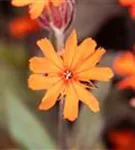 Lychnis arkwrightii 'Vesuvius' bildet radförmige, scharlachrote Blüten ab Juni.
