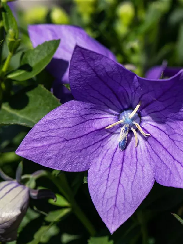 Platycodon grandiflorus, blau bildet glockenförmige, blaue Blüten ab Juli.