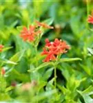 Lychnis chalcedonica bildet radförmige, rote Blüten ab Juni.