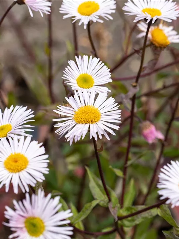 Erigeron 'Sommerneuschnee' bildet strahlenförmige, weiße Blüten ab Juni. Bei richtiger Pflege Nachblüte im September.