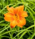 Hemerocallis 'Mauna Loa' bildet trichterförmige, orangefarbene Blüten ab Juni.
