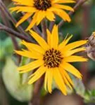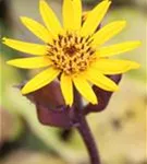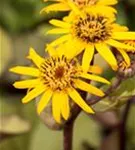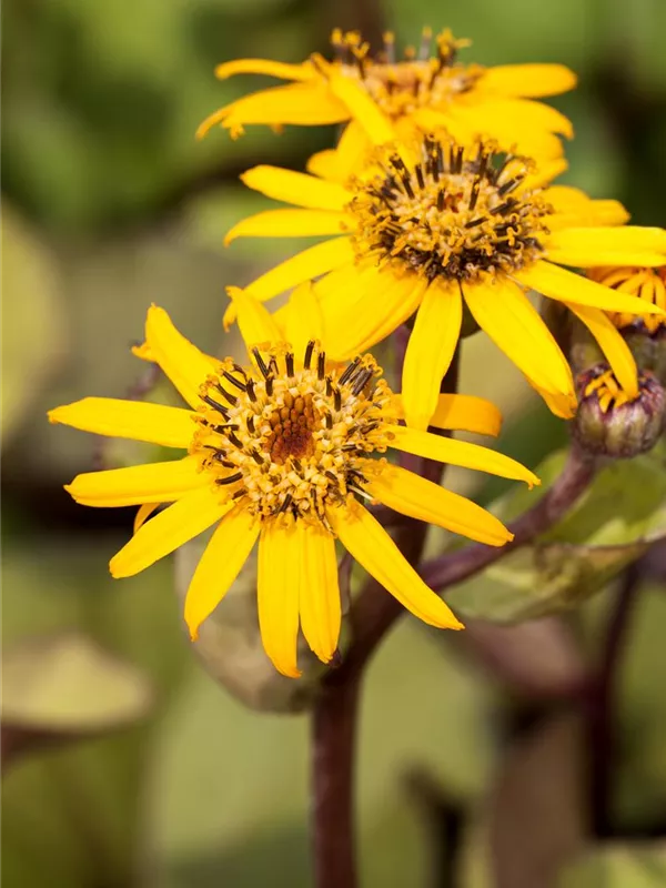 Ligularia dentata bildet körbchenartige, in Dolden angeordnete, goldgelbe Blüten ab August.