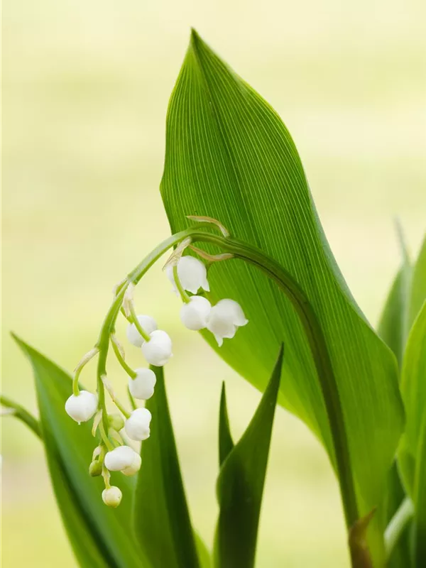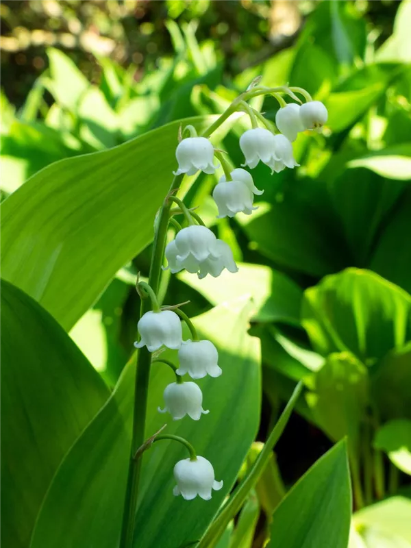 Convallaria majalis bildet glockenförmige, weiße Blüten ab April. Diese verströmen einen angenehmen Duft.