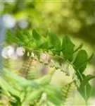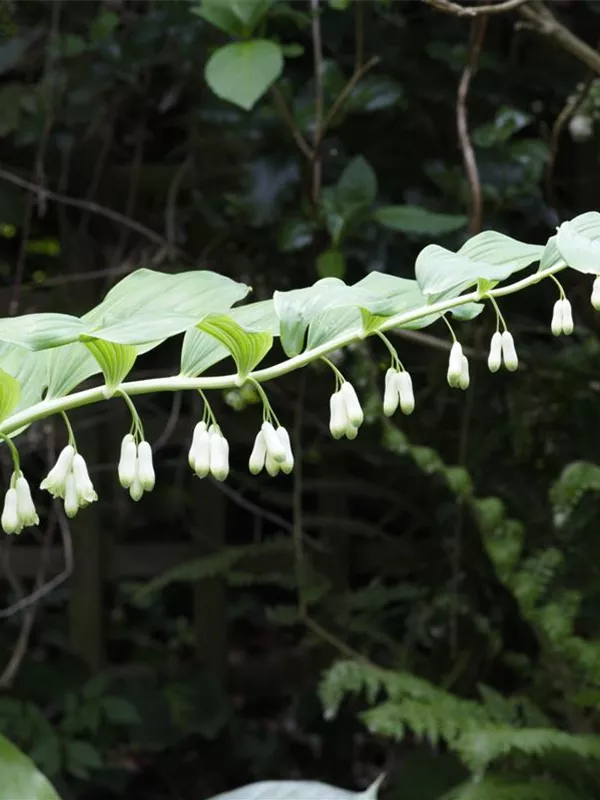 Polygonatum multiflorum bildet glockenförmige, weiße Blüten ab Mai. Diese verströmen einen angenehmen Duft.