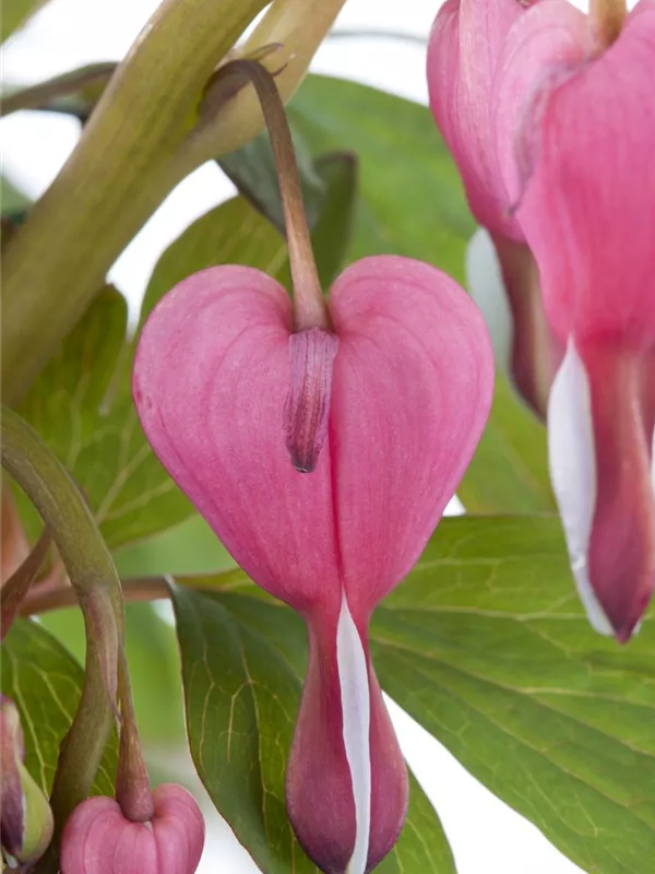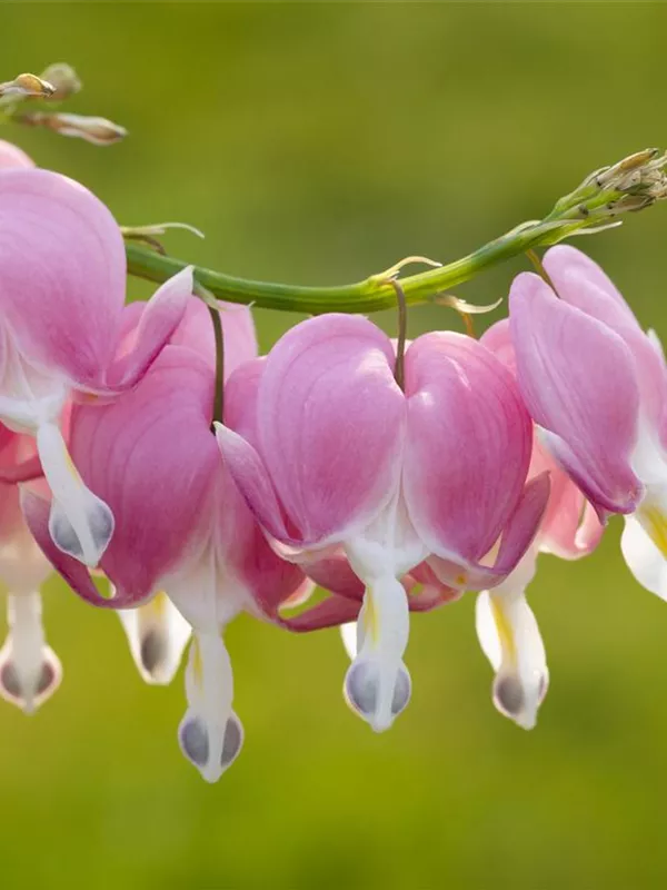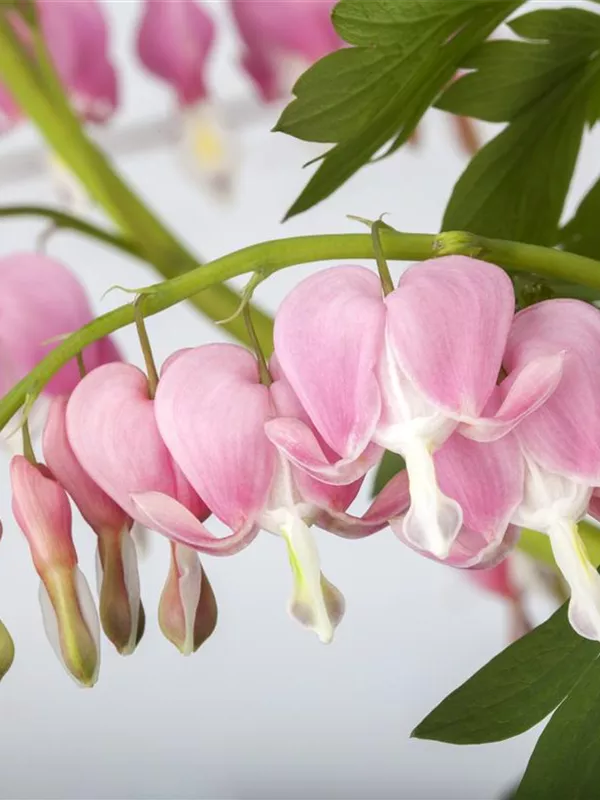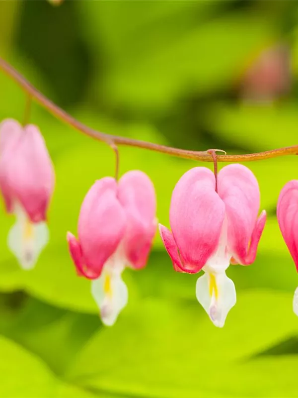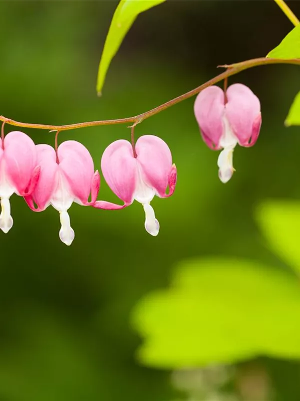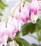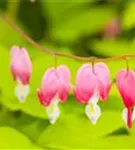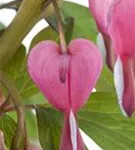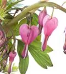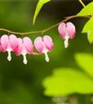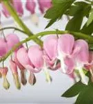 Dicentra spectabilis bildet in Trauben angeordnete, rosa-weiße Blüten ab Mai.