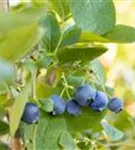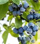 Die blauen Beeren haben einen süß-säuerlichen Geschmack. Das Fruchtfleisch ist fest. Reifezeit ab Juli.