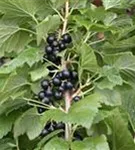 Die schwarzen Beeren haben einen süß-säuerlichen, aromatischen Geschmack. Reifezeit ab Juli.