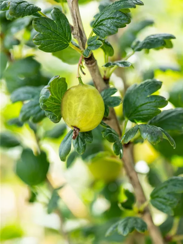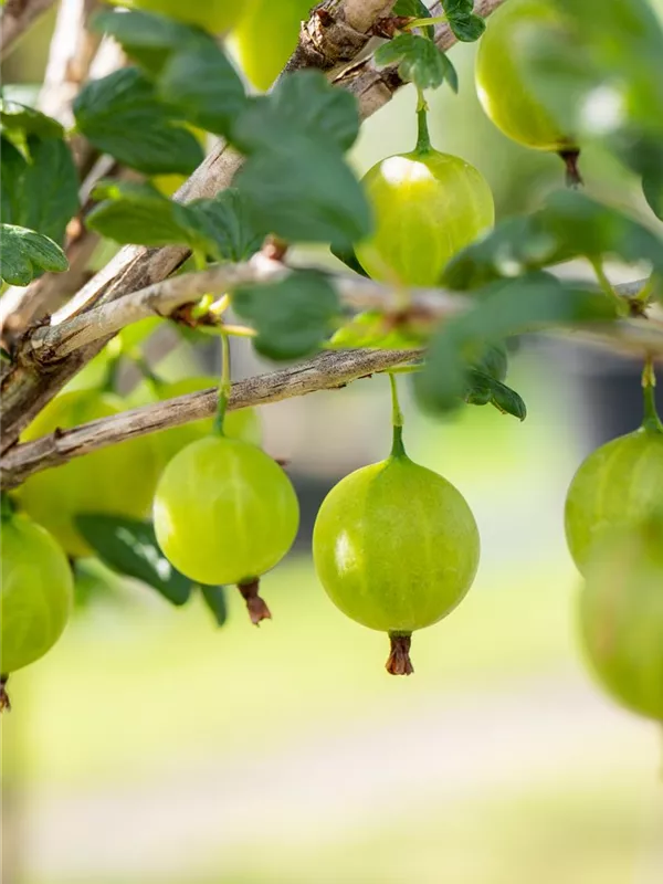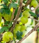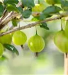 Die grüngelben bis hellgrünen Beeren haben einen aromatischen Geschmack. Reifezeit ab Juli.